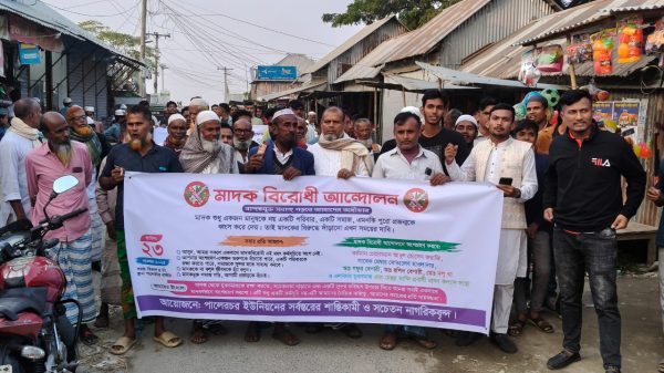 জাজিরার কুখ্যাত মাদক ব্যবসায়ীদের বিরুদ্ধে মানববন্ধন ও বিক্ষোভ মিছিল