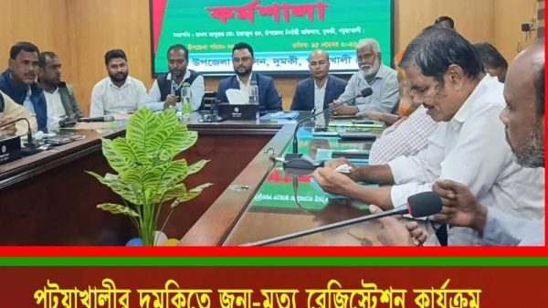 দুমকি উপজেলায়, জন্ম-মৃত্যু রেজিস্ট্রেশন কার্যক্রম ত্বরান্বিতকরণে কর্মশালা।