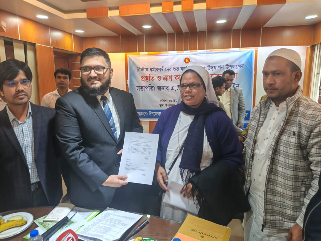 সভা শেষে উপজেলার বিভিন্ন এলাকার খ্রিস্টান ধর্মাবলম্বীদের ২২টি উপাসনালয়ের মাঝে প্রত্যেকটিতে ৫০০ কেজি করে চাল বিতরণ করা হয়। এই চাল বড়দিন উপলক্ষে ধর্মীয় অনুষ্ঠান ও দরিদ্র ও অসহায় খ্রিস্টান সম্প্রদায়ের মানুষের সহায়তায় ব্যবহার করা হবে।