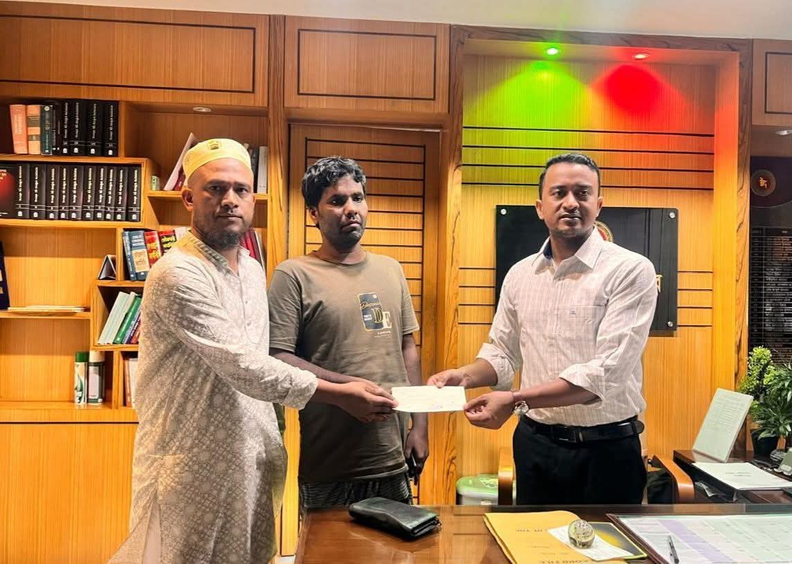 আজ সোমবার (৬ অক্টোবর) দুপুর ১২:৩০টায় নিহত দুজনের পরিবারের সদস্যদের হাতে চেক তুলে দেওয়া হয়।