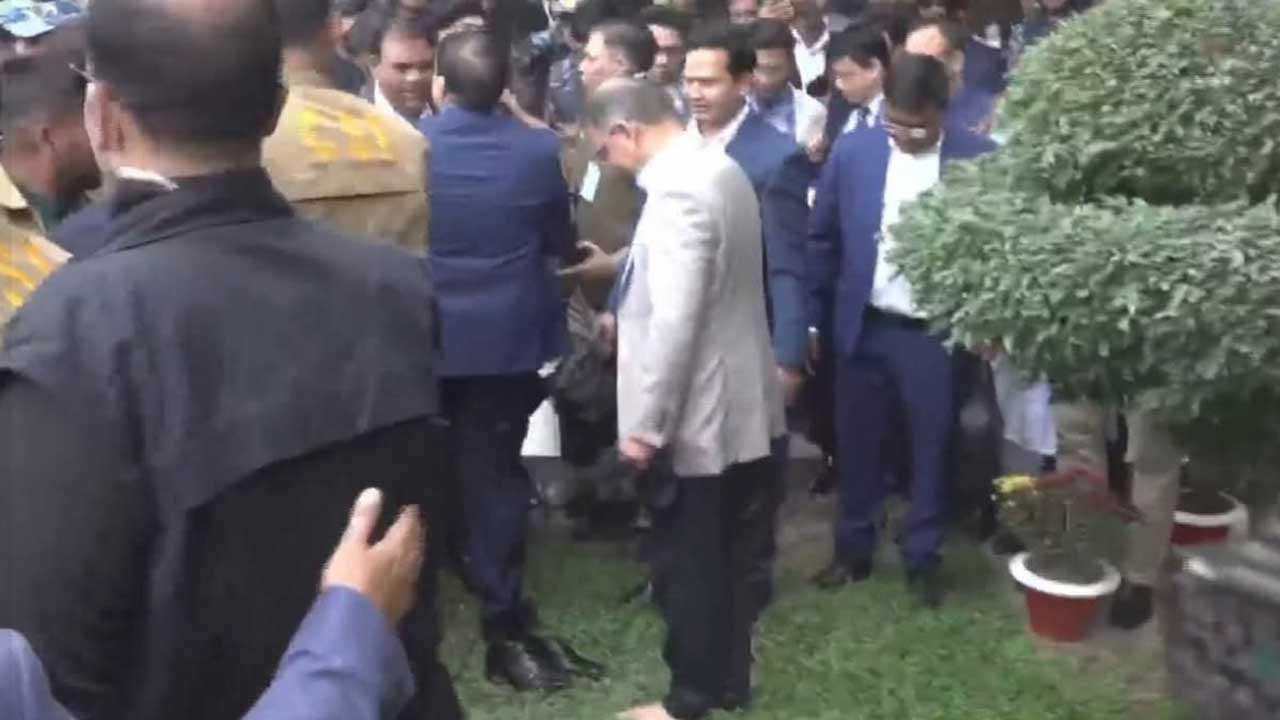 বৃহস্পতিবার (২৫ ডিসেম্বর) দুপুর সাড়ে ১২টার পর বিমানবন্দর থেকে বের হয়ে প্রথমে দুই পায়ের জুতা খোলেন। এরপর হাতে নেন এক মুঠো মাটি।