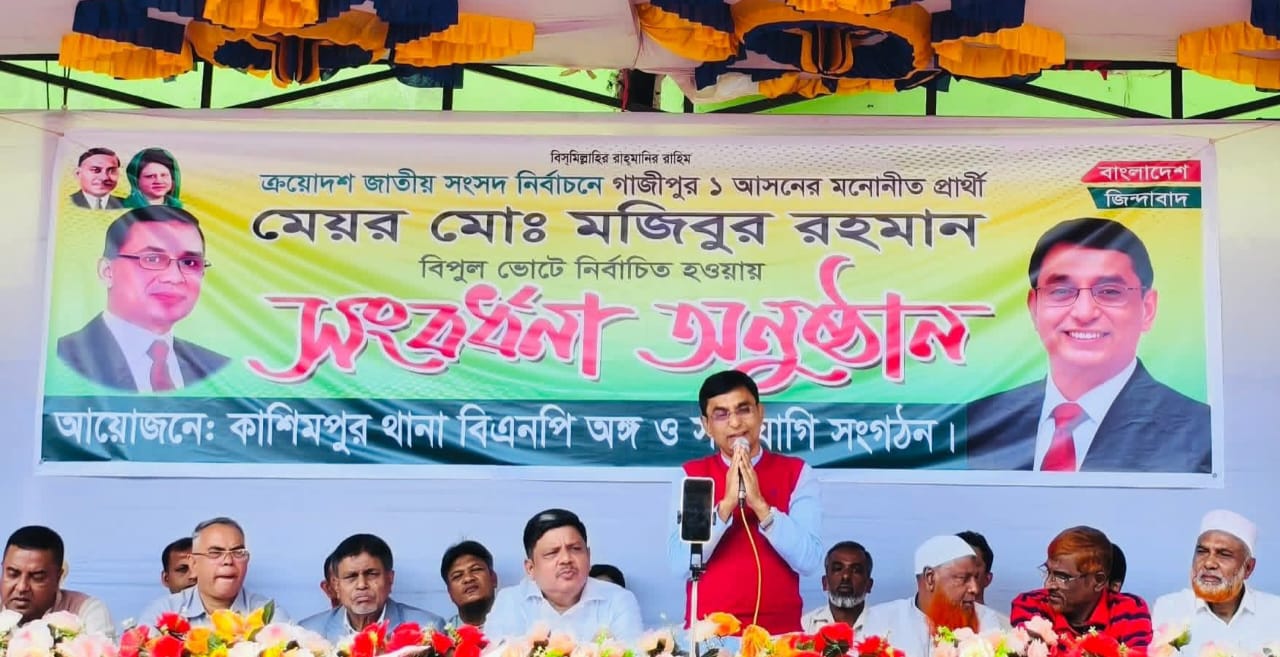 গাজীপুর -১ আসনে নির্বাচনে ধানের শীষে মজিবুর রহমানকে বিপুল ভোটে নির্বাচিত করায় গাজীপুর -১ আসনের ভোটারদের সংবর্ধনা, শুভেচ্ছা ও অভিনন্দন জানানো হয়েছে।