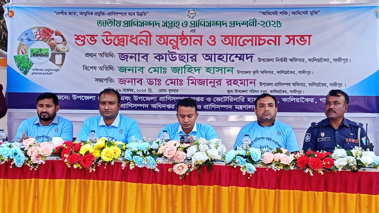 দেশীয় জাত আধুনিক প্রযুক্তি:প্রাণিসম্পদে হবে উন্নতি" আমিষেই শক্তি,আমিষেই মুক্তি"এই প্রতিপাদ্যকে সামনে রেখে,গাজীপুর জেলা কালিয়াকৈর উপজেলা চত্তরে এই উদ্ভোধনী অনু্ষ্ঠানে, উপজেলা প্রাণিসম্পদ অফিসার ডা: মোঃ মিজানুর রহমান এর সভাপতিত্বে প্রধান অতিথি হিসাবে উপস্হিত ছিলেন।