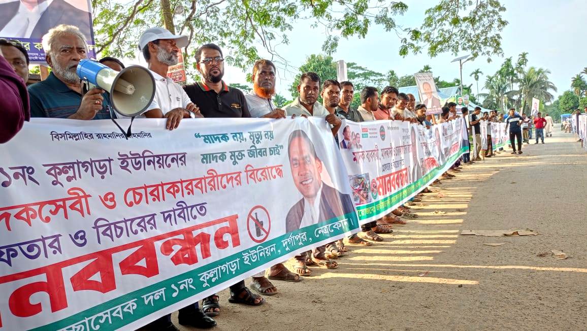 ‘‘মাদক বিক্রি করে যারা - সমাজ থেকে তাদের তারা’’ এই প্রতিপাদ্যে নেত্রকোনার দুর্গাপুরে উপজেলা সেচ্ছাসেবক দল কুল্লাগড়া ইউনিয়নের আয়োজনে ও কেন্দ্রীয় বিএনপির আইন বিষয়ক সম্পাদক ব্যারিস্টার কায়সার কামালের দিক নির্দেশনায়, মাদক বিরোধী সমাবেশ ও মানববন্ধন অনুষ্ঠিত হয়েছে।