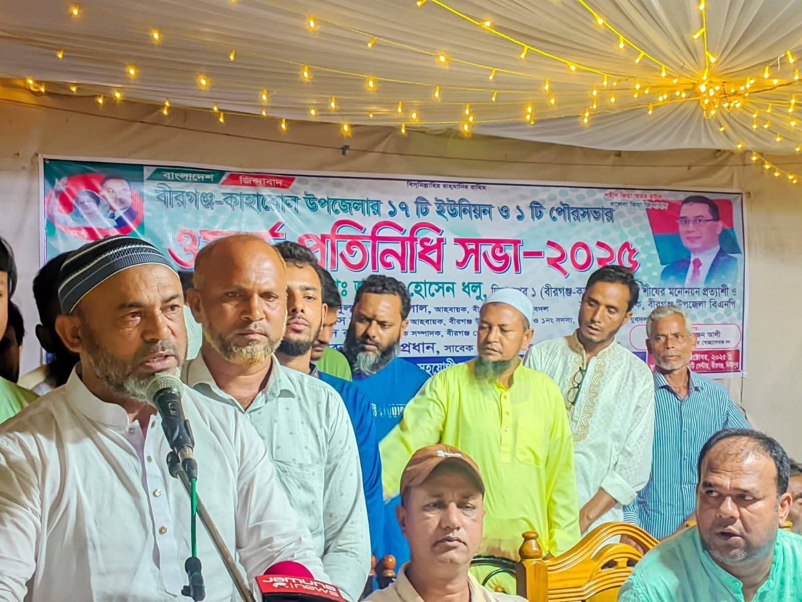 শনিবার (১১ অক্টোবর) দিনাজপুরের বীরগঞ্জ উপজেলার শালবন কমিউনিটি সেন্টারে বীরগঞ্জ ও কাহারোল উপজেলা পর্যায়ের প্রতিনিধি সভায় তিনি এ কথা বলেন।