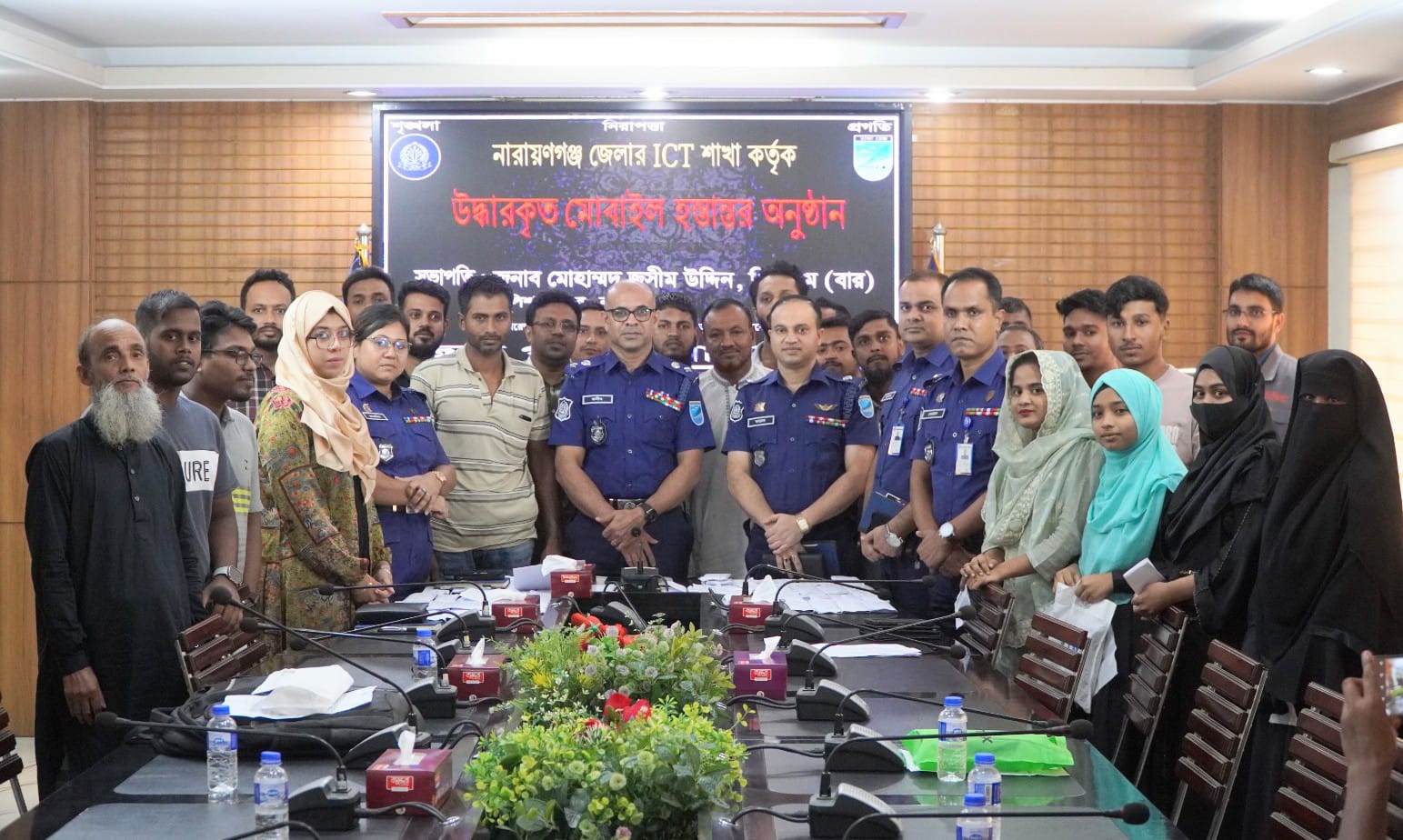 বিভিন্ন উপায়ে বেহাত হওয়া প্রায় ৬১টি মোবাইল উদ্ধার করে প্রকৃত মালিকদের নিকট হস্তান্তর করেছে আজ নারায়ণগঞ্জ জেলার পুলিশ সুপার জসীম উদ্দিন (পিপিএম, বার)