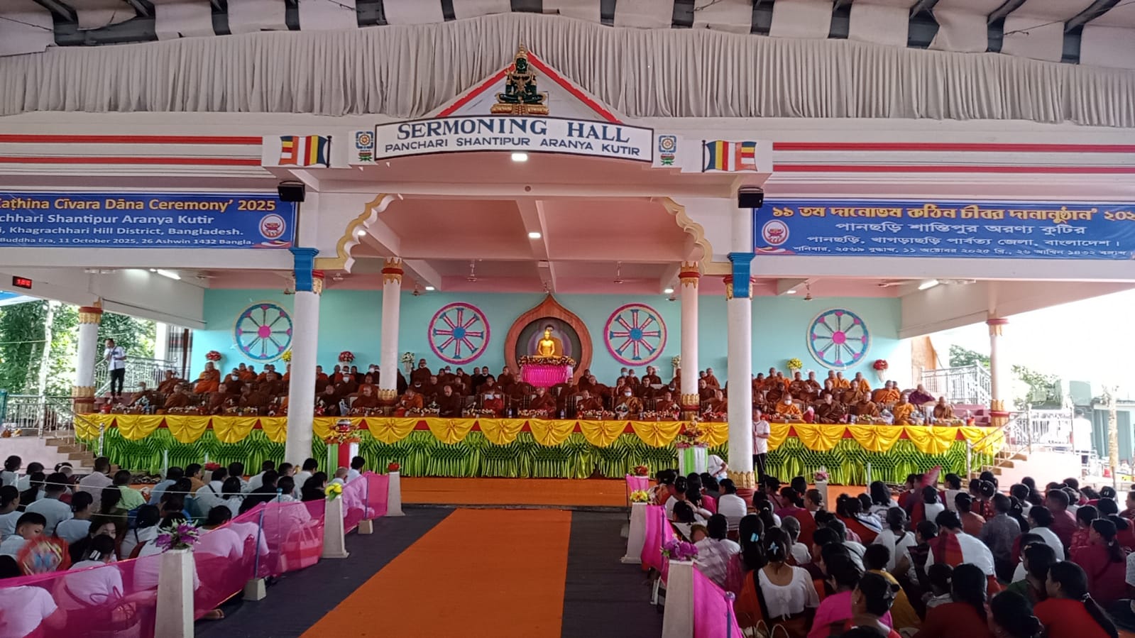 ধর্মীয় ভাবগাম্ভীর্য ও নানা আচার-অনুষ্ঠানের মধ্য দিয়ে খাগড়াছড়ির পানছড়ি উপজেলার শান্তিপুর অরণ্য কুটিরে অনুষ্ঠিত হয়েছে বৌদ্ধ ধর্মাবলম্বীদের অন্যতম গুরুত্বপূর্ণ ধর্মীয় উৎসব দানোত্তম কঠিন চীবর দান।