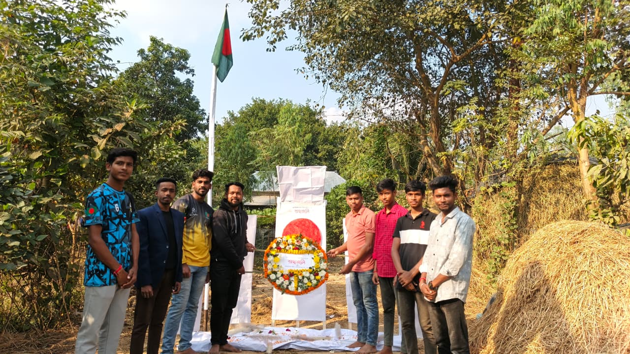 আজ ১৬ ডিসেম্বর (মঙ্গলবার) সকাল ৯ টায় মহান বিজয় দিবস ২০২৫ উপলক্ষে শেরপুর উপজেলার অন্তর্গত আম্বইল বাগানপাড়া'র আদিবাসী শিক্ষার্থীদের নিজ হাতে তৈরি অস্থায়ী শহীদ মিনার বেদিতে আদিবাসী ছাত্র পরিষদ শেরপুর উপজেলা শাখার পক্ষ থেকে ১৯৭১ সালে মহান স্বাধীনতা যুদ্ধে সকল শহীদদের প্রতি শ্রদ্ধা নিবেদন সহ সকল শহীদদের স্মরণে ১ মিনিট নিরবতা পালন করা হয়।