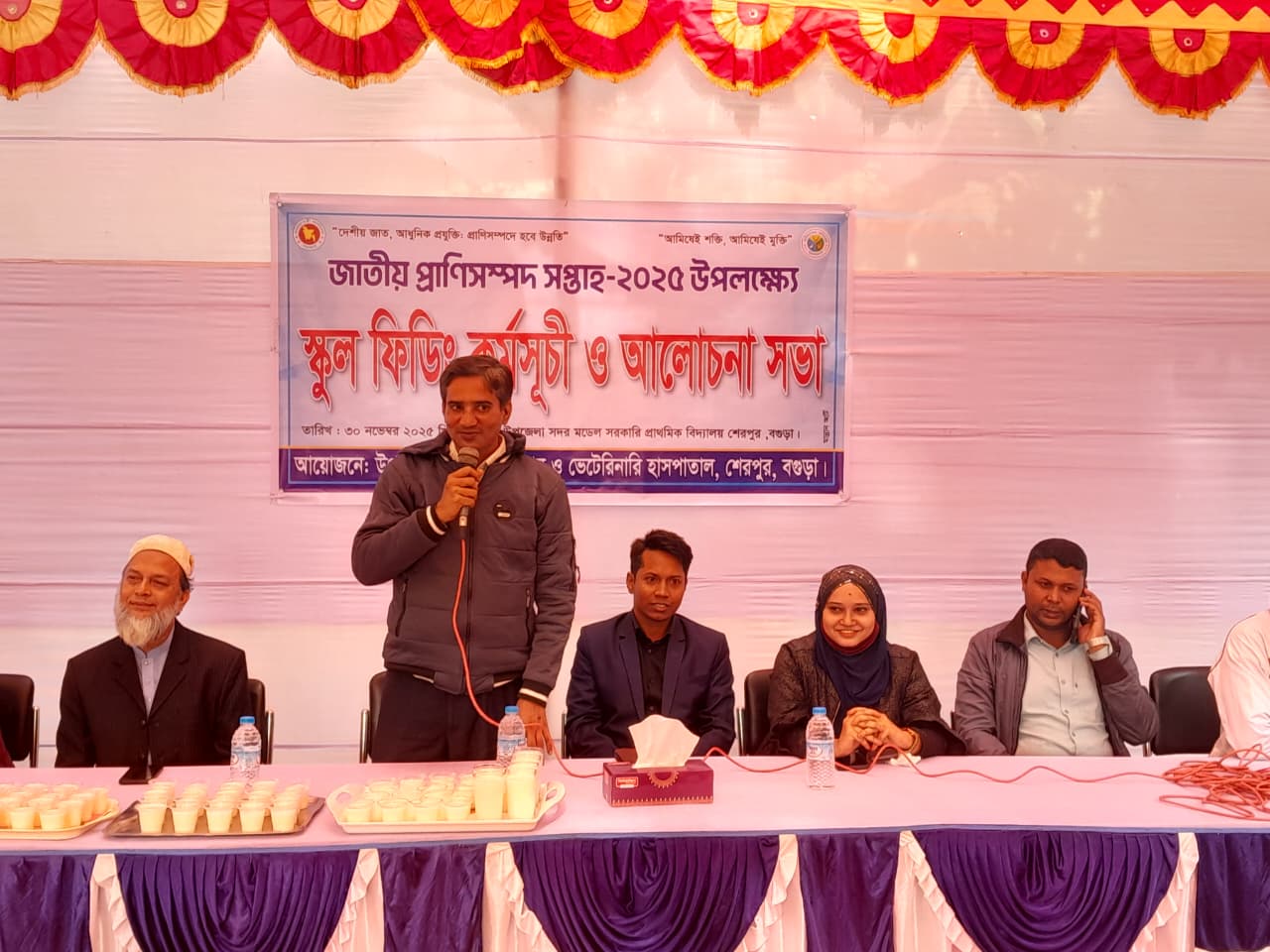 “দেশীয় জাত, আধুনিক প্রযুক্তি, প্রাণিসম্পদে হবে উন্নতি" প্রতিপাদ্যকে সামনে রেখে বগুড়ার শেরপুরে জাতীয় প্রাণিসম্পদ সপ্তাহ ২০২৫ এর ষষ্ঠ দিনে উপজেলা সদর মডেল সরকারি প্রাথমিক বিদ্যালয় প্রাঙ্গণে স্কুল ফিডিং কর্মসূচী ও আলোচনা সভা অনুষ্ঠিত হয়েছে।