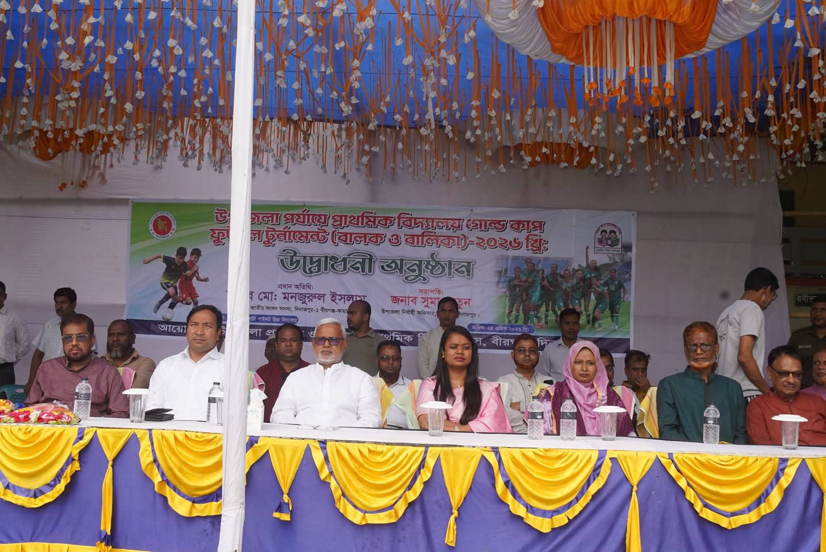দিনাজপুরের বীরগঞ্জ উপজেলায় প্রাথমিক বিদ্যালয় পর্যায়ের বালক ও বালিকা গোল্ডকাপ ফুটবল টুর্নামেন্ট-২০২৬ এর উদ্বোধন করা হয়েছে।