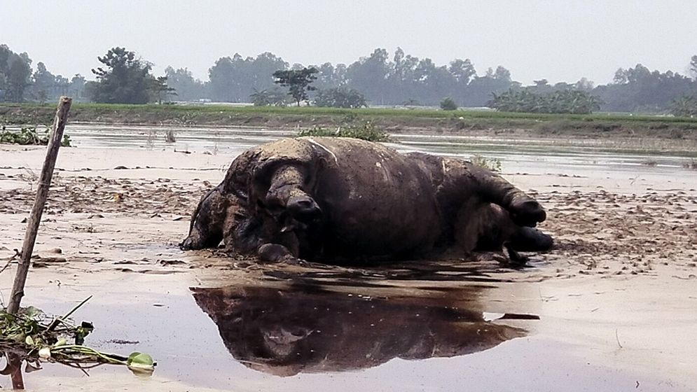 ধারণা করা হচ্ছে, গণ্ডারের আবাসস্থল তলিয়ে যাওয়ায় বন্যার পানিতে ডুবে মারা গছে এবং ভেসে এই চরে আটকে গেছে দেহটি। নদীপাড়ের বাসিন্দারা মৃত গণ্ডারটি দেখতে পেয়ে ইউপি চেয়ারম্যানকে খবর দেন।