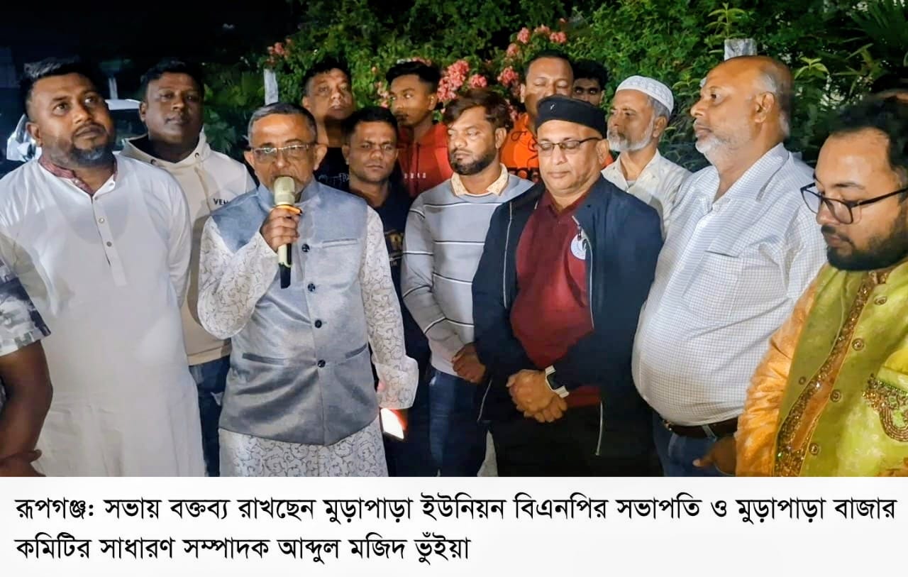 সভায় বক্তব্য রাখেন রূপগঞ্জ উপজেলা যুবদলের ভারপ্রাপ্ত আহবায়ক আমিনুল ইসলাম প্রিন্স, মুড়াপাড়া ইউনিয়ন বিএনপির সভাপতি ও মুড়াপাড়া বাজার কমিটির সাধারণ সম্পাদক আব্দুল মজিদ ভুঁইয়া, মুড়াপাড়া ইউনিয়ন যুবদলের সভাপতি ও মুড়াপাড়া বাজার কমিটির সহ-সভাপতি মো: কামাল হোসেন, মুড়াপাড়া ইউনিয়ন যুবদলের সাধারণ সম্পাদক ওবায়দুর রহমান রকি, মুড়াপাড়া ইউনিয়ন পরিষদের সাবেক সদস্য তারিকুল ইসলাম মাছুম ও মজিবুর রহমান, মুড়াপাড়া ইউনিয়ন যুবদলের যুগ্ম সাধারণ সম্পাদক আবুল আজাদ, মুড়াপাড়া ইউনিয়ন যুবদলের সাংগঠনিক সম্পাদক পলাশ ফারুক, সহ-সভাপতি রিপন মিয়া, দপ্তর সম্পাদক অপু মিয়া প্রমুখ। পরে রূপগঞ্জ উপজেলা শিল্পকলা একাডেমী ও সাংবাদিকদের সমন্বয়ে সাংস্কৃতিক অনুষ্ঠানের আয়োজন করা হয়।