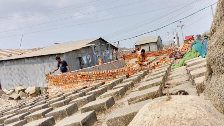 সরেজমিনে দেখা যায়, 'গণ্ডামারার ৯নং ওয়ার্ডের বড়ঘোনার খাটখালী এলাকায় ২০২২ সালে ২৯৩ কোটি ৬০ লাখ টাকা ব্যয়ে (উপজেলাজুড়ে) জলোচ্ছ্বাস-বন্যা মোকাবিলায় নির্মিত টেকসই বেড়িবাঁধের সিসি ব্লক বেষ্টিত বাঁধের উপর পাকা দালান (দোকান) নির্মাণ কাজ চলছে। এতে নির্মাণকৃত পাকা দালানের পাশে ও নিচে পড়ে রয়েছে বাঁধের শত শত সিসি ব্লক। এতে তড়িঘড়ি করে নির্মাণ করা এসব অবৈধ স্থাপনার প্রায় ৭০% কাজই শেষ হয়েছে। বাকী কাজও চলছে খুব দ্রুত। এ সময় স্থানীয়দের মুখে এসব অবৈধ স্থাপনা নির্মাণ করতে দেখে আশেপাশের আরও কয়েক জায়গায় অন্যান্যদের স্থাপনা নির্মাণের প্রস্তুতির কথা শোনা গেছে।