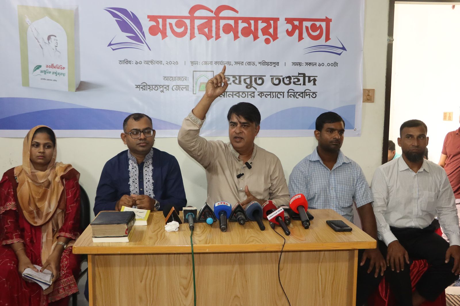 শরীয়তপুর জেলা হেযবুত তাওহীদের উদ্যোগে “তাওহীদভিত্তিক আধুনিক রাষ্ট্র গঠনে গণমাধ্যমকর্মীদের ভূমিকা” শীর্ষক মতবিনিময় সভা অনুষ্ঠিত হয়েছে। সোমবার (১৩ অক্টোবর, ২০২৫) সকাল ১০টায় শরীয়তপুর জেলা হেযবুত তওহীদের কার্যালয়ে এ মতবিনিময় সভার আয়োজন করা হয়।