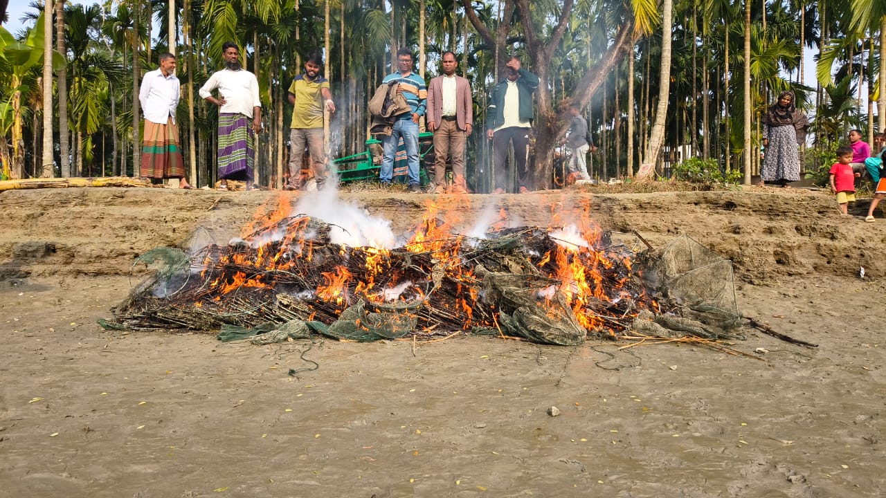 পরে জব্দকৃত এসব অবৈধ জাল অগ্নিসংযোগের মাধ্যমে বিনষ্ট করা হয়। আজ সকালে অভিযান পরিচালনা করে এই অবৈধ জাল জব্দ করে। জব্দ করা জালের আনুমানিক বাজারমূল্য প্রায় ১ লাখ ৫০ হাজার টাকা বলে জানিয়েছে মৎস্য বিভাগ।