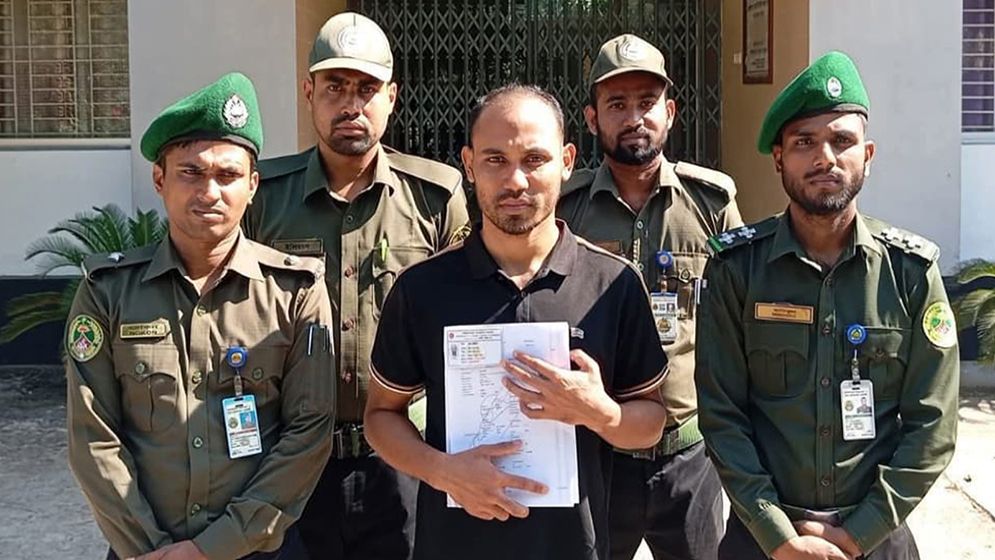 বুধবার দুপুরে মাগুরা আঞ্চলিক পাসপোর্ট অফিসের কর্মকর্তারা মো. রিয়াস নামের ওই ব্যক্তিকে সদর থানা পুলিশের হাতে সোপর্দ করেছেন। একদিন আগে মঙ্গলবার (১৮ নভেম্বর) মাগুরার শ্রীপুর উপজেলা নির্বাচন অফিস থেকে পাওয়া ভোটার কার্ড নিয়ে তিনি মাগুরা পাসপোর্ট অফিসে যান। সেখানে দেওয়া কাগজপত্রে তার বাবার নাম রতন আলি মৃধা, মা মোছা. শুকুরন খাতুন এবং গ্রামের ঠিকানা মাগুরার শ্রীপুর উপজেলার আমতৈল হিসেবে উল্লেখ করা হয়েছে।