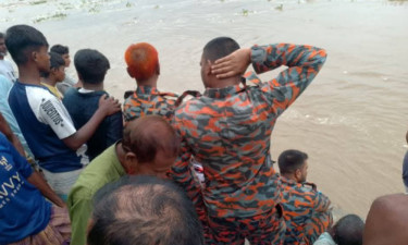 উজানের ঢলে ভেসে আসা গাছের গুঁড়ি ধরতে গিয়ে একজন নিখোঁজ
